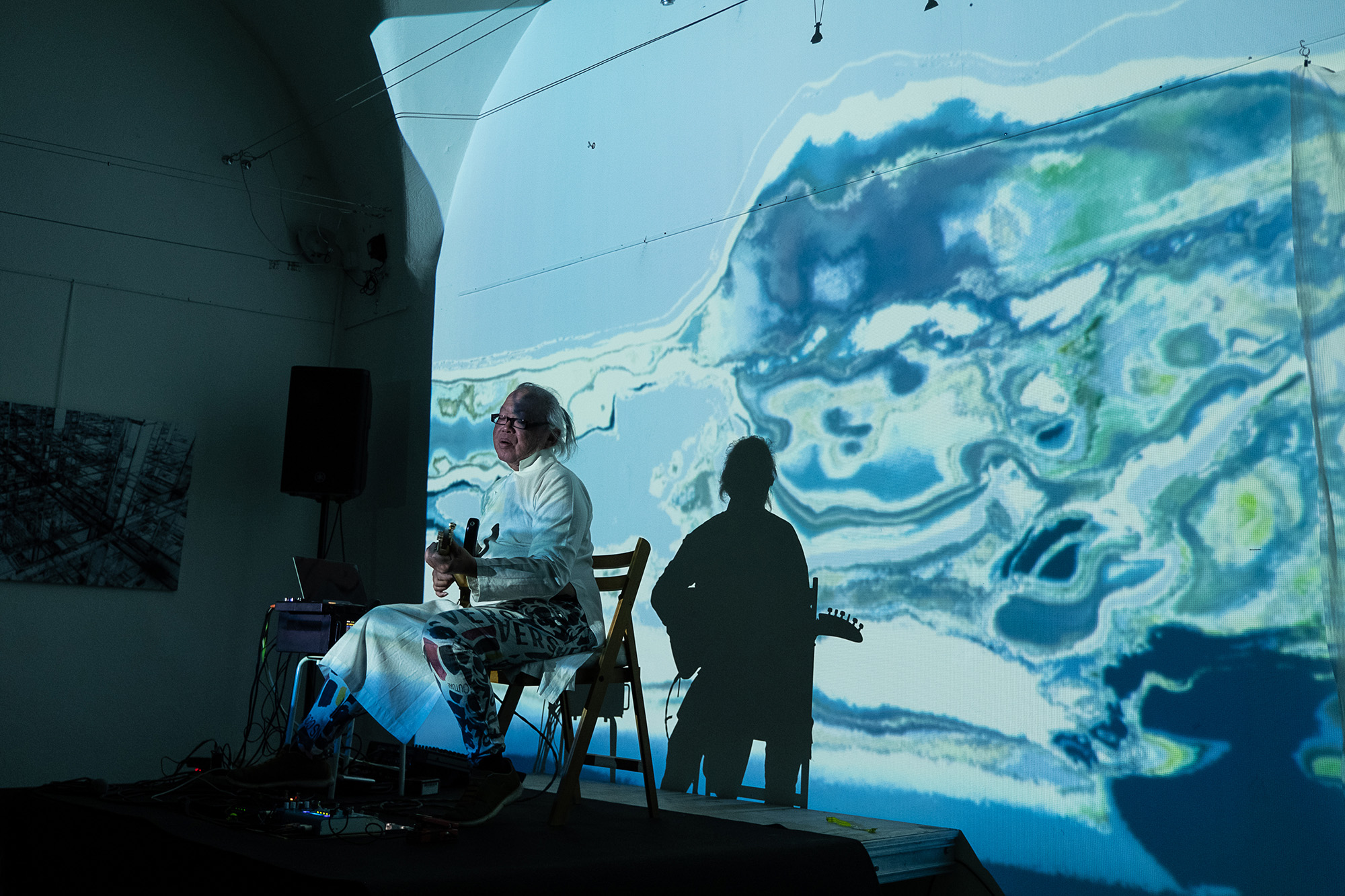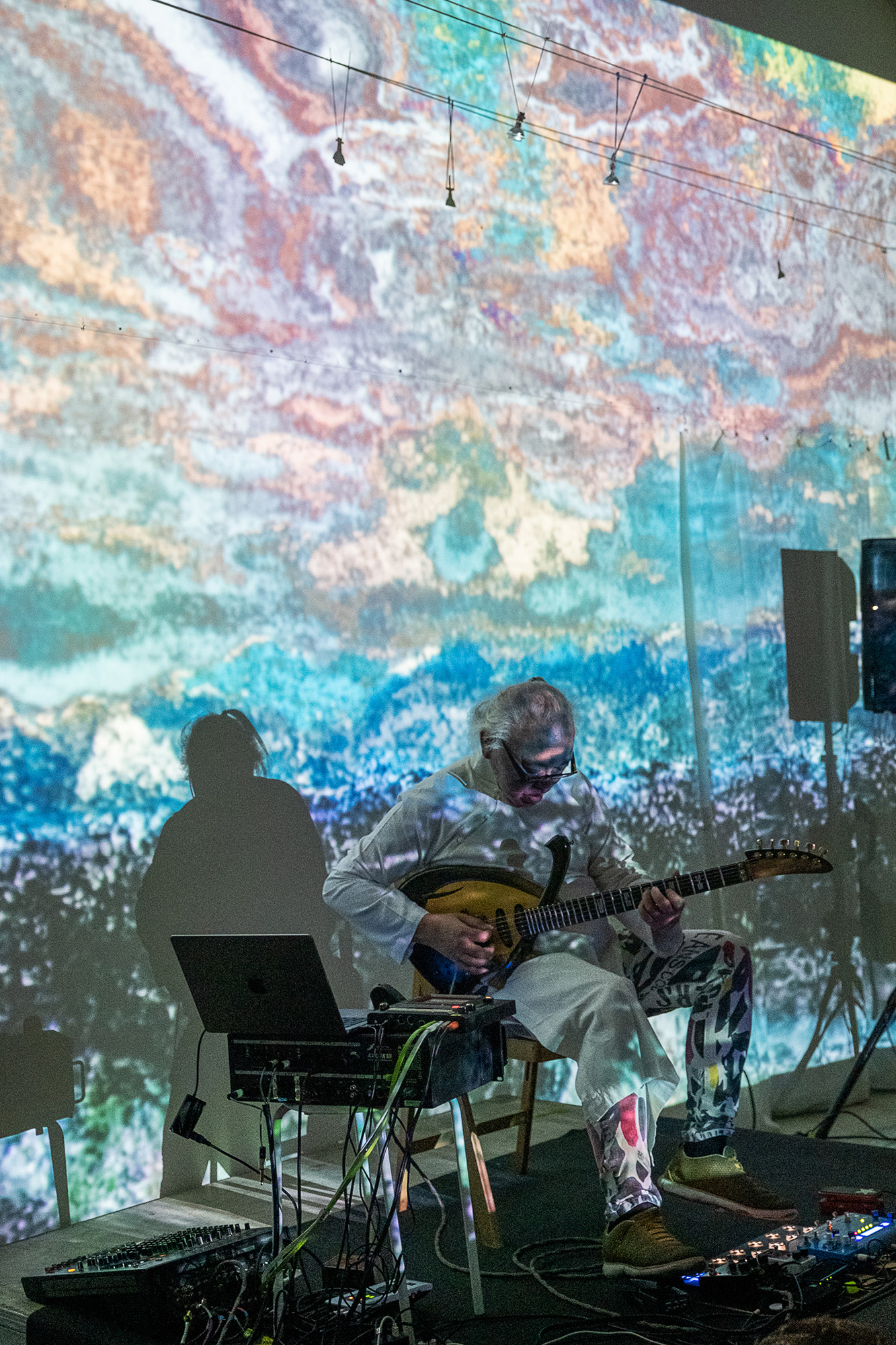 Audiovisual improvisation performance in duo with jazz guitarist Nguyen Lê, at Galerie Espace Liberté, Crest, September 2022.